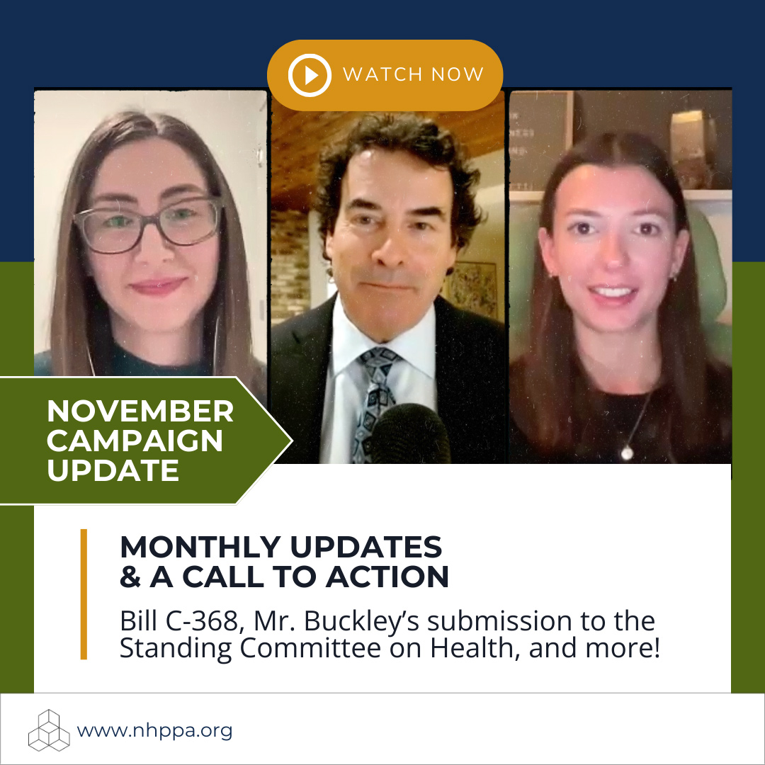 - This month’s campaign progress on Bill C-368, including testimony highlights from the Standing Committee on Health.