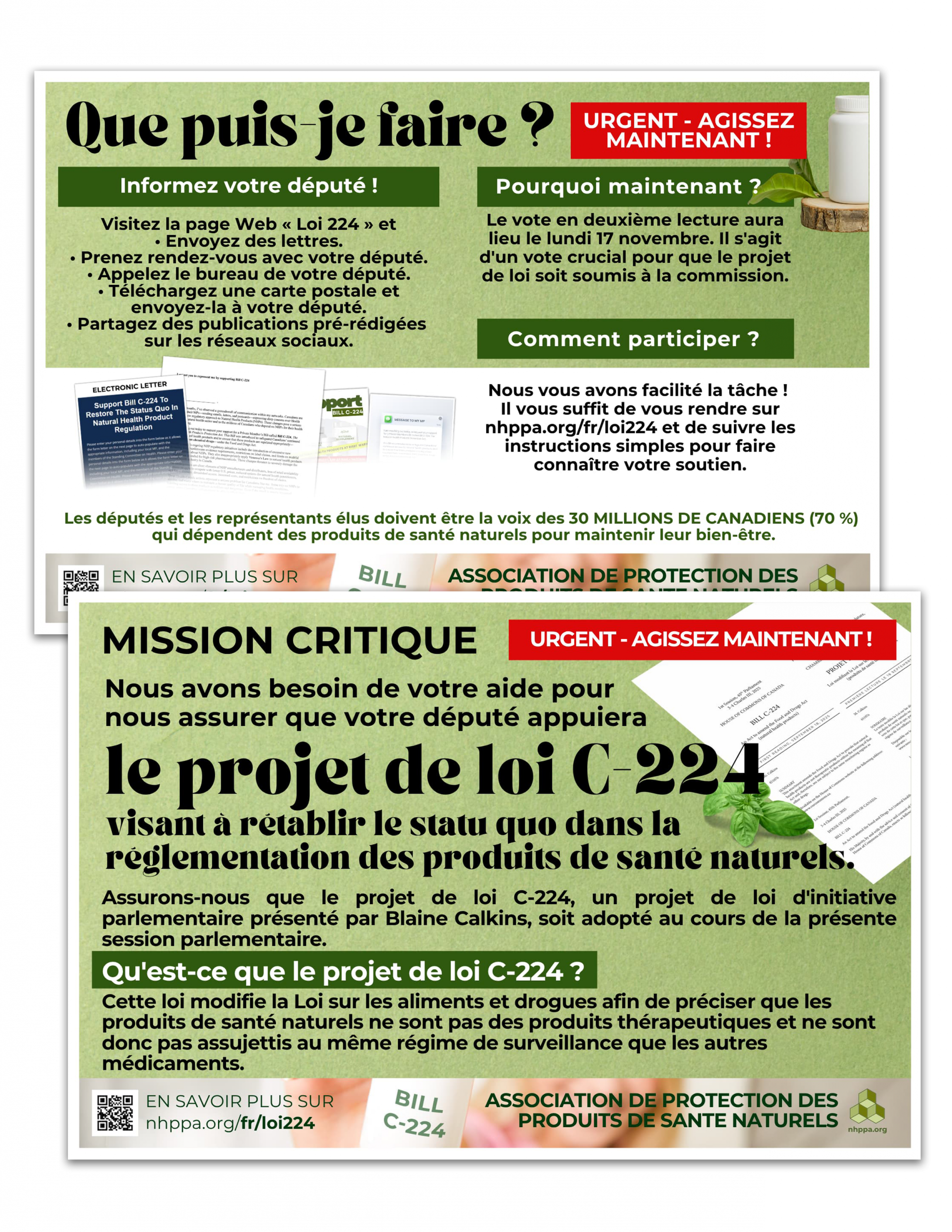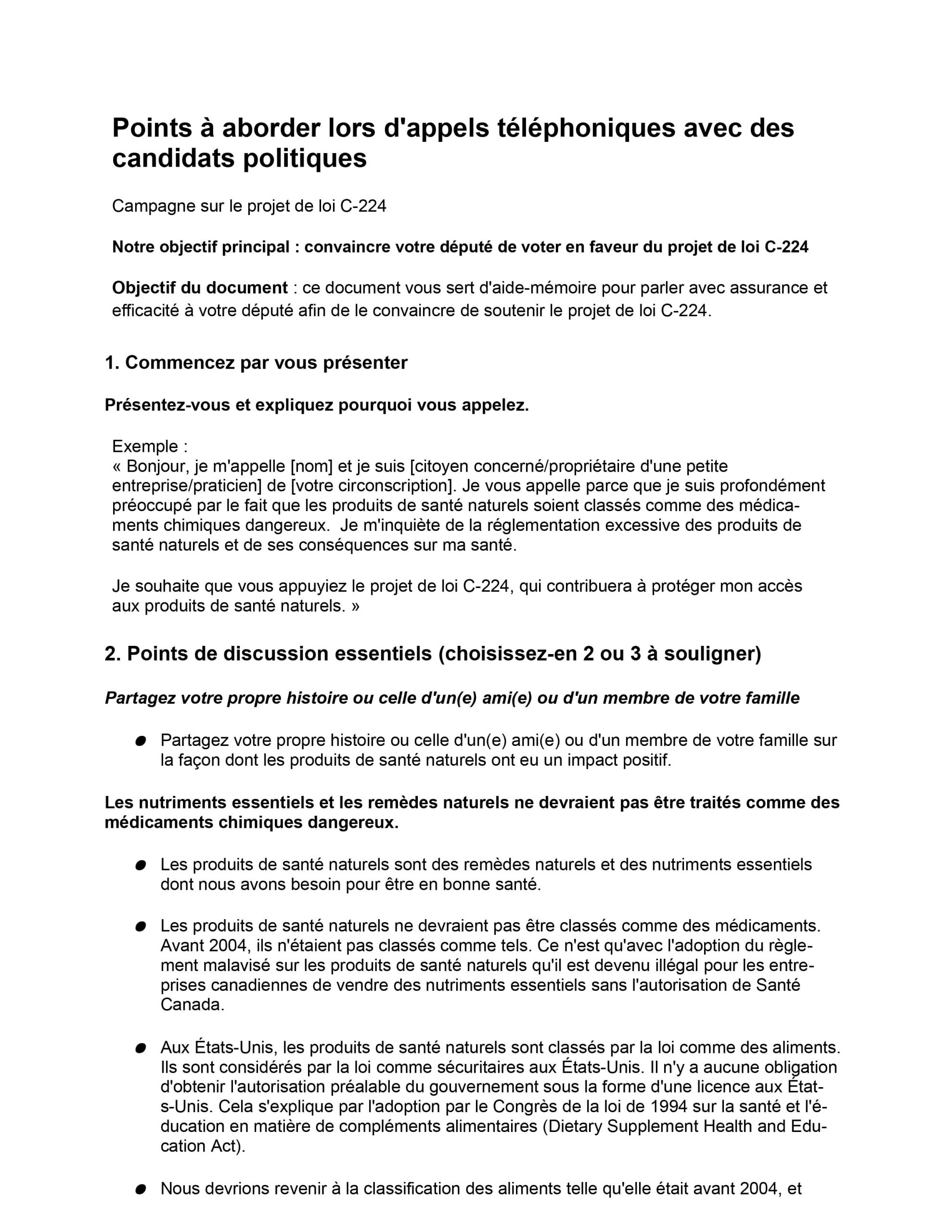 De plus, vous pouvez imprimer une copie d’un de nos 3 résumés sur le résumé de la crise des produits de santé naturels de 2 pages et l’ajouter à votre lettre.