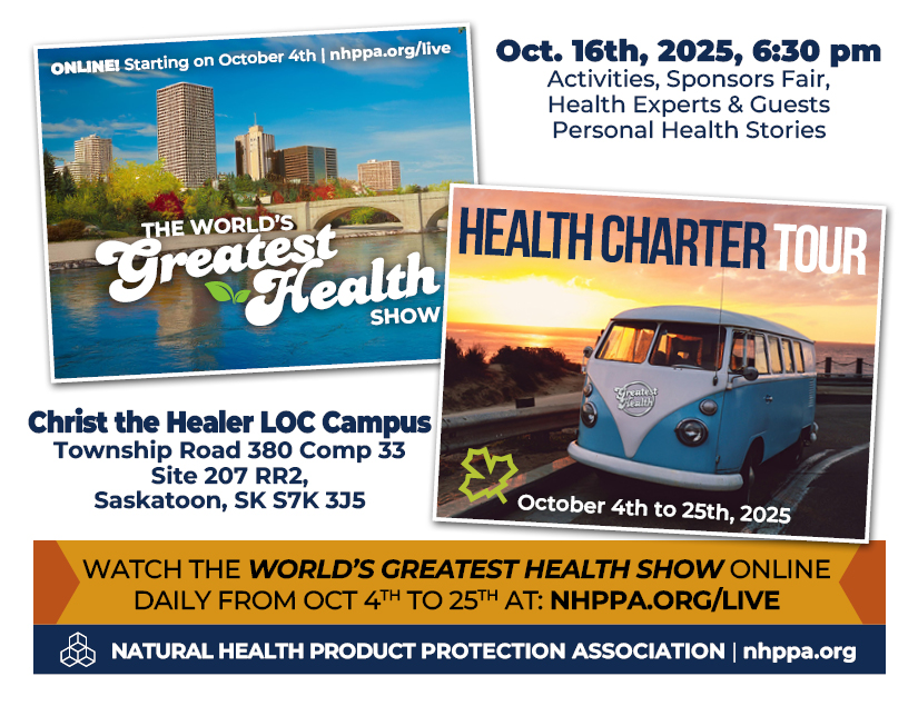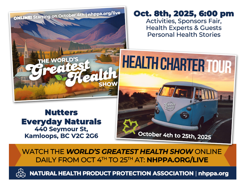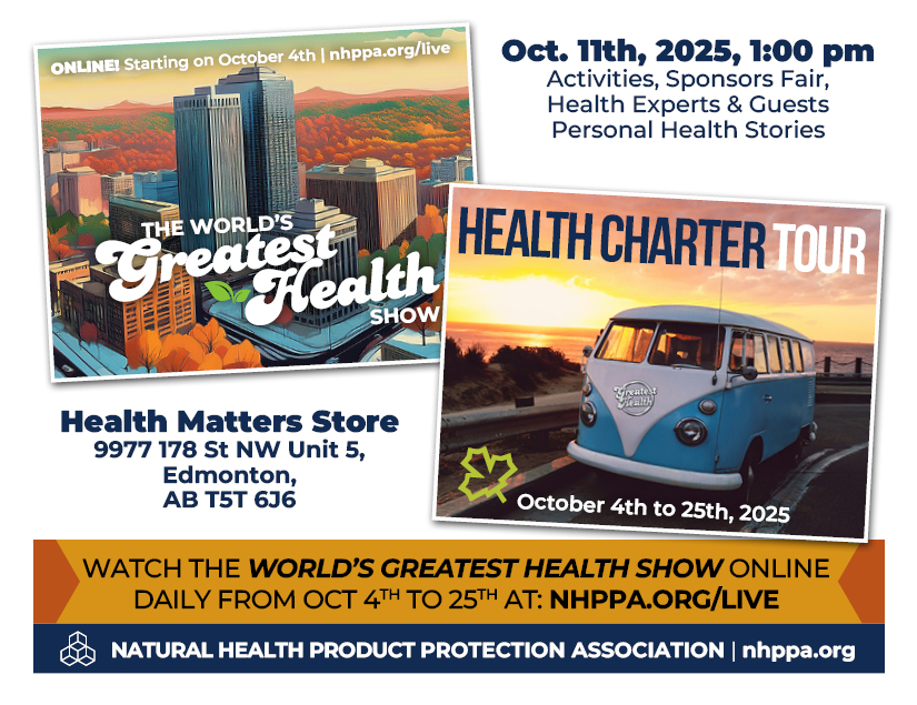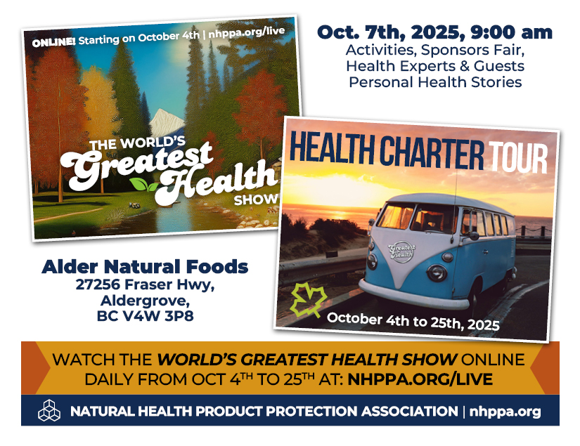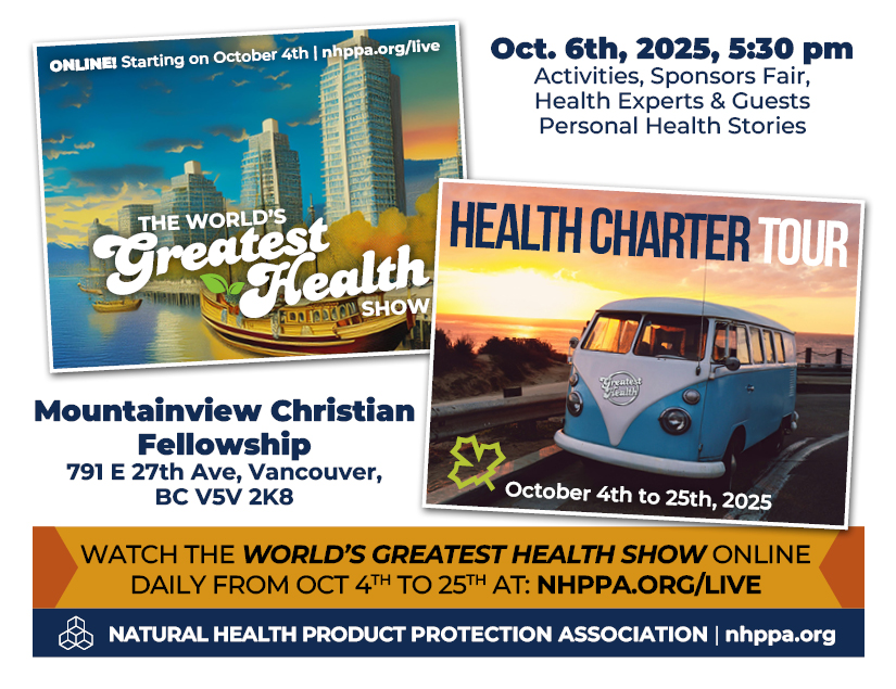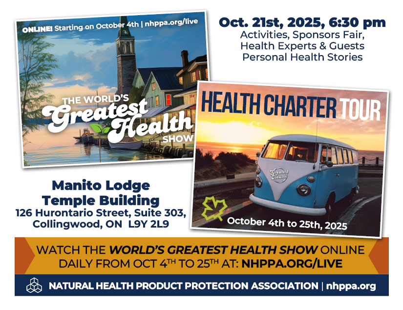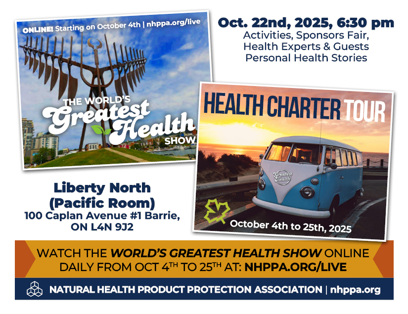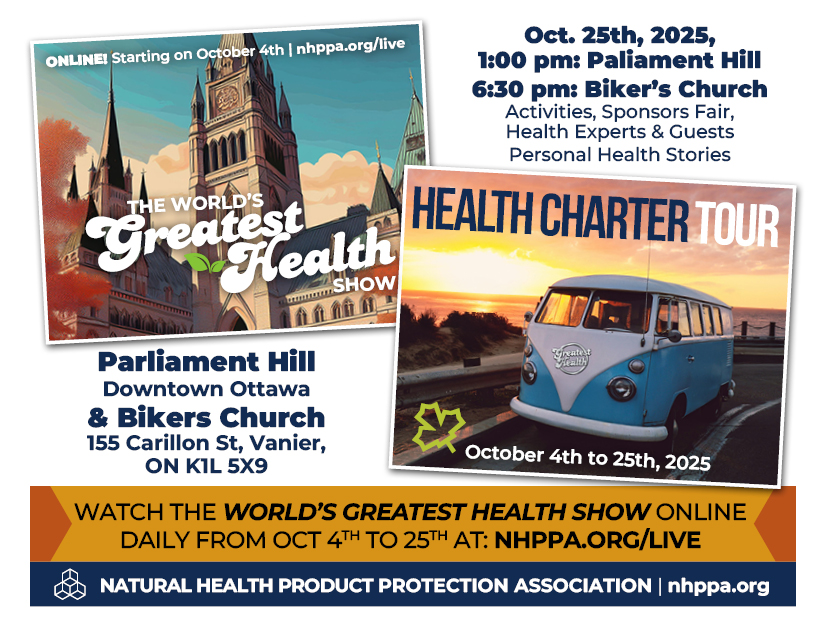 Free tickets are available at Eventbrite or at the door depending on availability. Don’t take a chance and miss out on this once in a lifetime opportunity to make history and protect our Natural Health Products once and for all! Let’s make the Charter law!