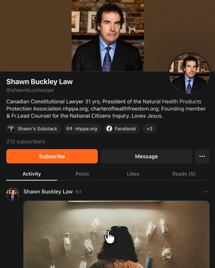 Buckley Unfiltered moves underground to Substack at Shawn Buckley Law —@shawnbuckleylaw. Shawn posts exclusive articles tackling the fight for health freedom without limits. Get access now.